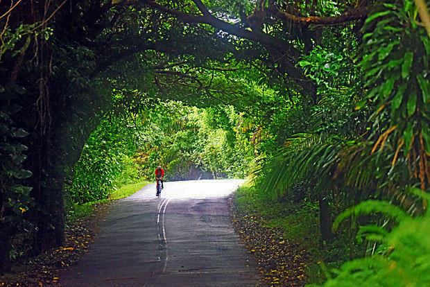 Riding under a canopy of trees on the Red Road section.