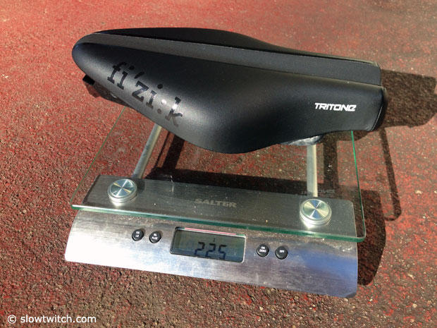 On a scale the saddle weighed 225 grams. 5 grams more than advertised in the box.