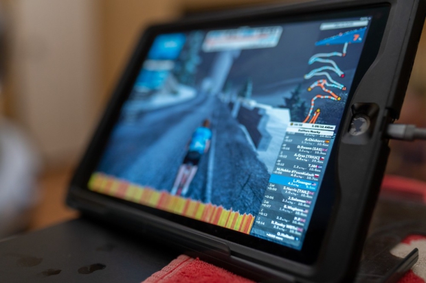 Wahoo sent out their newest generation KICKR smart trainer so I had my loaner Ventum NS1 road bike rigged up to that. I got my hands on this new KICKR a few weeks earlier and had ridden with it up both Ven-Top and Alpe du Zwift a few times. I found I changed my riding style from staying seated on climbs to now preferring to hit the climbs out of the saddle. I think this was partially due to the trainer’s AXIS pods serving as feet on each of the three legs providing a climbing experience more akin to what you’d get riding outside. I also used Wahoo’s CLIMB which provides additional side-to-side rotation while also adjusting the pitch of the bike to match the pitch of the road on the climb.