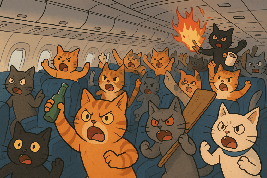 Surely a plane load of Triathletes had enough “race day nutrition” left over to open an on board Aid Station to feed everyone.