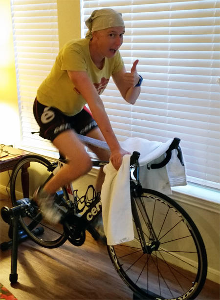 In short, she is doing well given the last 9 months. She rides the trainer for 30 or so minutes a couple of days a week, does yoga couple of times a week, walks, and does some light strength work 2-3 days a week. Lots of sleeping, etc. to make sure she doesn't get run down at all. She also isn't swimming because a couple of the medications she is on are still immunosuppressive. Nor is she running because one of the medications can create temporary bone density issues. She and her mind want to do more, but I won't let her!!
