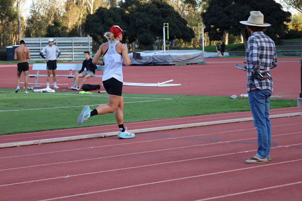 Brittany: Pre COVID, we always did that set in a long course meters pool. The fastest interval we worked up to was 1:20. That was in early March before pools shut down.