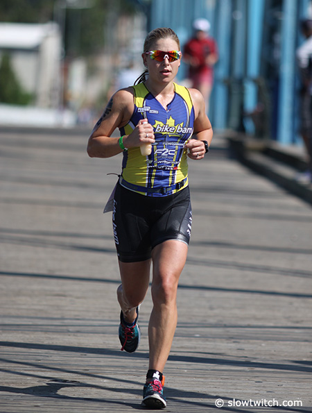 Jen: Around the 70km mark, was when I got passed by the first age group athlete. That said, there might have been a few age groupers ahead of me out of the water. Those were out of sight as I got on the bike. Over the duration of the bike portion, I might have been passed by 5 to 10 age group athletes.
