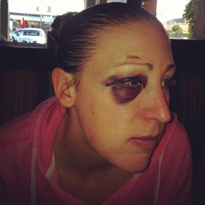 Jodie: To be honest not for that long, I was looking like a boxer for about 2 weeks but I still have the little scar on top of my eye brow which I think will remain for a while.
