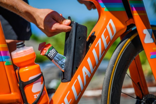 The Nutrition Fuelcell offers enough storage for up to a dozen gels, half a dozen bars or chews and also secures the Shimano junction box.