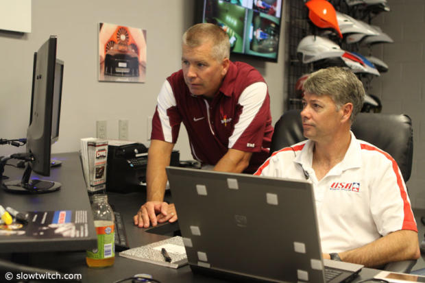 Head coach Tuffy Latour and Grant Schaffner of ProtoStar Engineering look on and take notes.