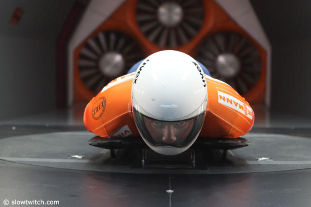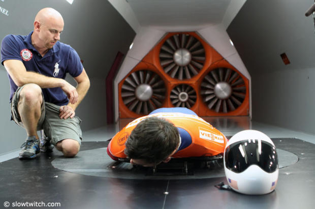 These US skeleton team athletes offer roughly the same drag as a wheel alone.
