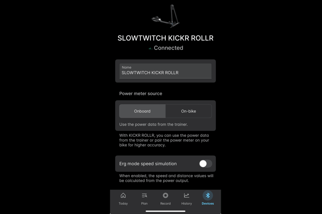 With this update Wahoo claims that there are three major new additions. (Although I would say that it’s really just one thing as you no longer need a power source to achieve the full benefits of the KICKR ROLLR whether you’re following a “TV watching style training program” or a virtual one. Now a non-power meter user can connect fully with Wahoo SYSTM, Zwift, Rouvy, TrainingPeaks Virtual, MyWhoosh and more.)