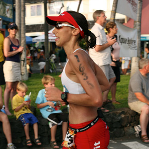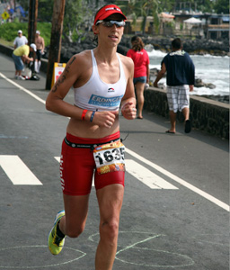 Silvia: Yes I love the running and swimming gear of Adidas. My feet fit perfectly in the Adizero range, light weight training shoes with light cushioning. For training I use the Adizero LT for short distance and the Adizero XT for trails. In Kona I ran the Adizero Boston (range FW09) and I was very happy with that choice☺