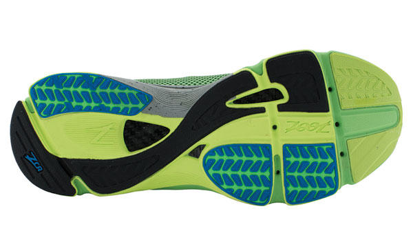 Up close with the sole of the Zoot Ultra Tempo 6 running shoe.