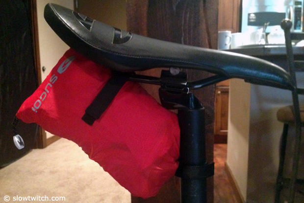 When folded together, the Sugoi RS packs down into a tiny little pouch that can be mounted under the saddle just like a saddle bag.