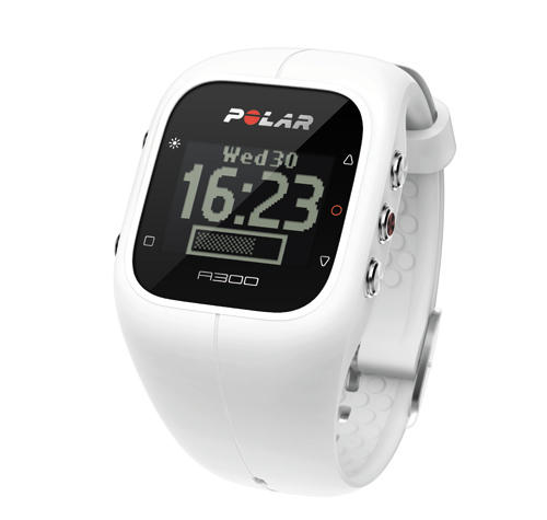 Polar just launched the A300, a watch meant for the beginning athlete and likely a direct competitor to fitness tracking arm bands. It logs your daily and nightly movements, and then analyzes your activities and workouts on Polar Flow. It has interchangeable bands that allow users to personalize their unit with their favorite colors. It is offered in pink, black and white and you can purchase additional bands in grey, blue and yellow, to suit your mood or style. Dimensions and buttons appear to be very similar to the M400 watch but according to Polar the A300 is less runner focused, and less. expensive.