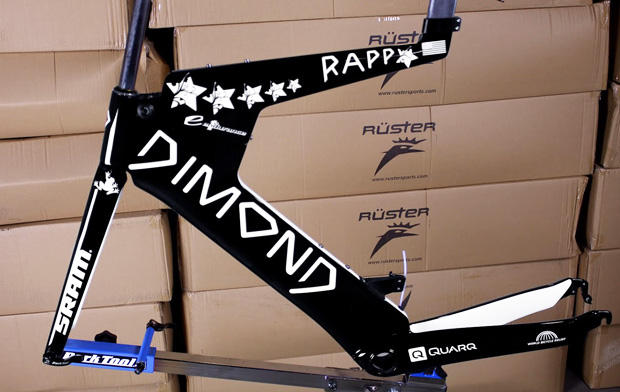 Jordan Rapp signed up to ride for the Dimond brand moving forward and he thus joins several other pros who will ride on that popular beam bike envisioned by TJ Tollakson and brought to reality by the crew around David Morse. The folks at Dimond just finished the custom Rappstar themed frame and this is a first look at this black and white frame. We will have a full gallery on our site when that bike is built up, but for now it is not even in the hands of Rappstar yet. So you get to drool over it here first.