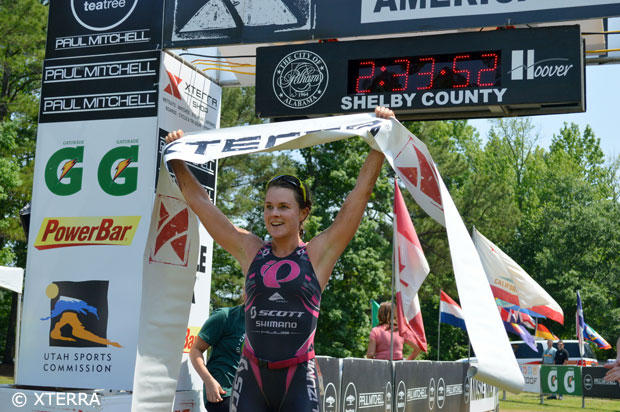 Flora Duffy seems to have found her calling in off road triathlon and the fast Bermudan knocked one out of the park in Pelham, Alabama at the XTERRA Southeast Championships. She swam and ran fast, but it was her mountain biking that impressed most onlookers. She cranked out the fastest bike split on the way to a superb win in 2:32:04.