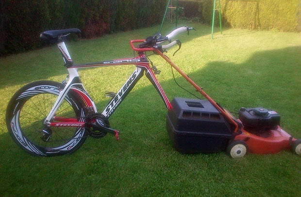 We often struggle to juggle chores at home with important training sessions and German athlete Clemens Coenen came up with a smart idea to tackle both his lawn and get a bike effort in. The grass looks certainly fine and the next day Coenen finished second at the Sprint Tri in Hameln, Germany. So no more excuses for having to do chores.