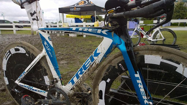 Memphis in May features a time trial start where male and female Pros start alternating every 10 seconds. That makes it very tough to know where you are in terms of placing, but this year was made even more so difficult with an extremely muddy transition area after a heavy downpour. The bikes of many athletes looked like cyclocross machines when it was all said and done.