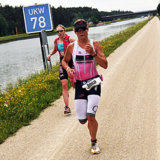 After 10km, Goehner joined Jacobs in the chase on the run. Jacobs, who envisioned a sub-2:40 split before the race, fell confidently in step with Goehner as they chased Stadler on the packed dirt path along the Main-Donau Canal, with Stadler's lead whittled down to 2 minutes.