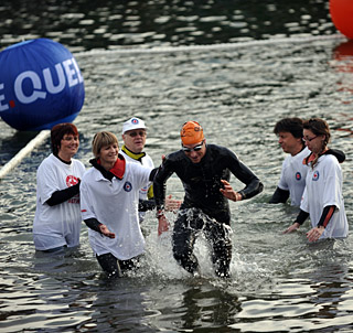 An important part of the Quelle Challenge entry list are the teams which make up a significant percentage of the 4,500 triathletes who flock to Roth. Women's winner and new record holder Chrissie Wellington said a few words about breaking through after the race which were answered by the results of the relay.