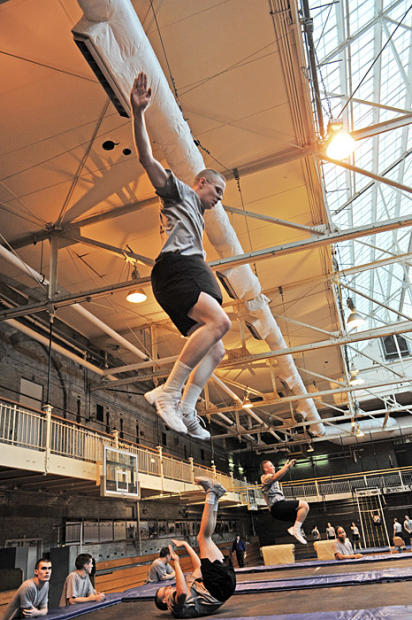 n mid afternoon, cadets train on the trampoline in Arvin Gym to pass one of the West Point physical requirements.