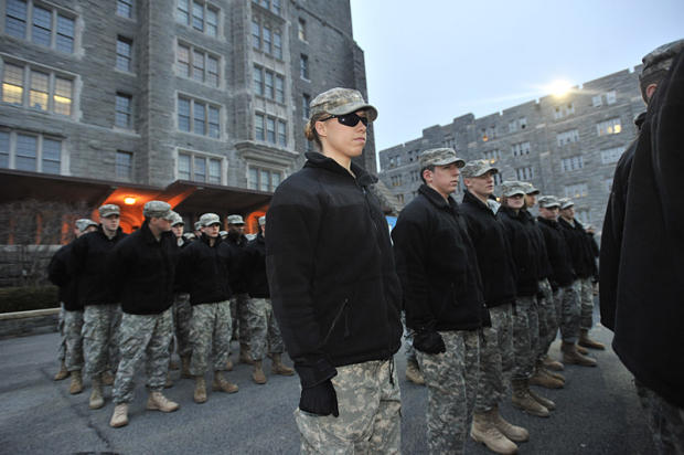 Cadet Ashley Morgan, Class of 2010, the top women’s triathlete, lines up for morning formation at 6:55 AM.