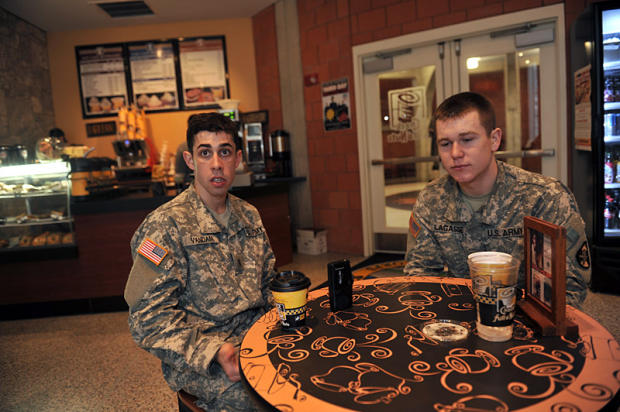 Mid morning, Cadets Vandam and Brian Lagasse stop for coffee. Many cadets consider coffee and Red Bull as the mother’s milk of West Point’s long days and short sleep.
