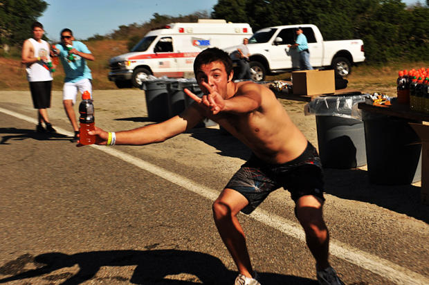 Eager aid station volunteer
