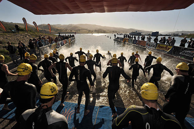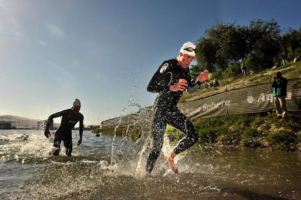 Rasmus Henning emerges first from the water but ended up 5th.