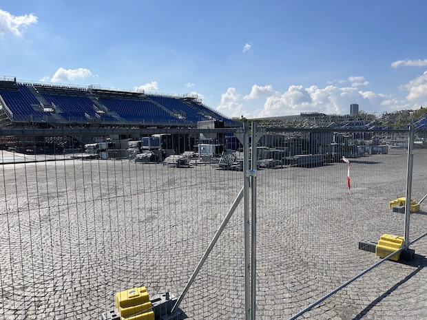 For triathlon, there is minor construction on the Port Alexandre III bridge. (This is also the home of marathon swimming and the cycling time trial finish.) The venue is pretty much set.