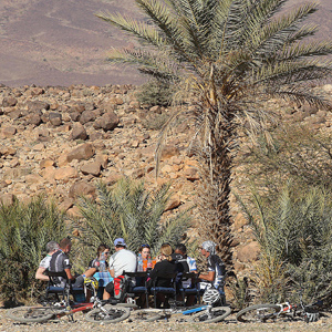 If you go on a tour led by these gents, it's like this: pretty hard core if you want hard core—less so if you don't—and then inexplicably stylish and comfortable at night, considering where the day's ride may terminate. It might be a 4-star hotel. Or a set of clay-brick, low sod-roof structures at 2,300 meters in elevation, at the top of an Atlas Mountain pass, that might remind you of what you could find 18,000 feet in the Himalayas. Places like this—and there were a couple on this trip—will certainly be among the most memorable in which you've ever stayed.