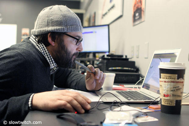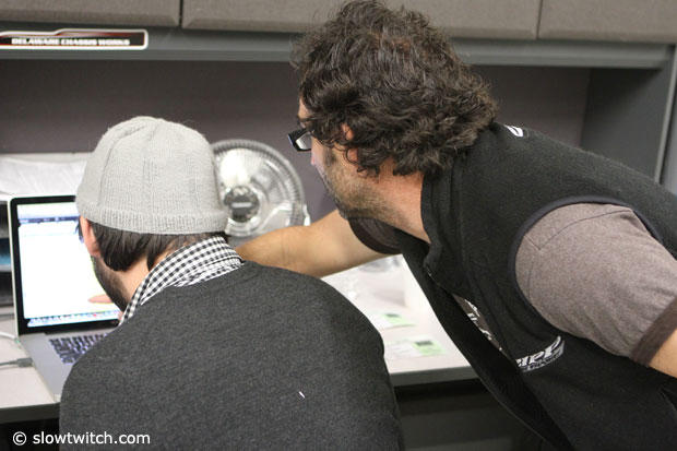 Meanwhile in the front room Michael Hall is watching the numbers closely – fueled by quite a bit of coffee.
