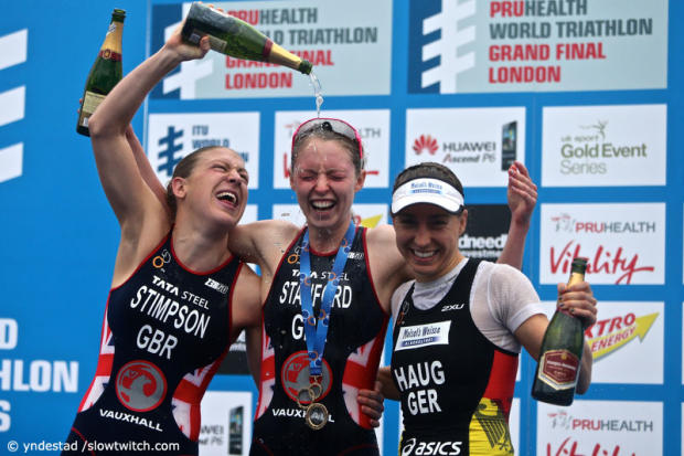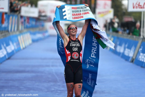 A dramatic female Grand Final event in London saw the hopes of two athletes crushed on course but British fans were made happy with Non Stanford taking the win and the WTS series title.