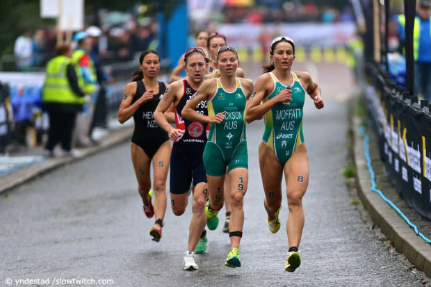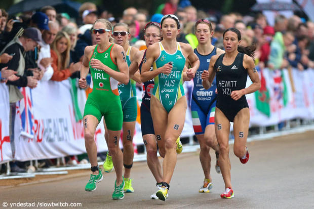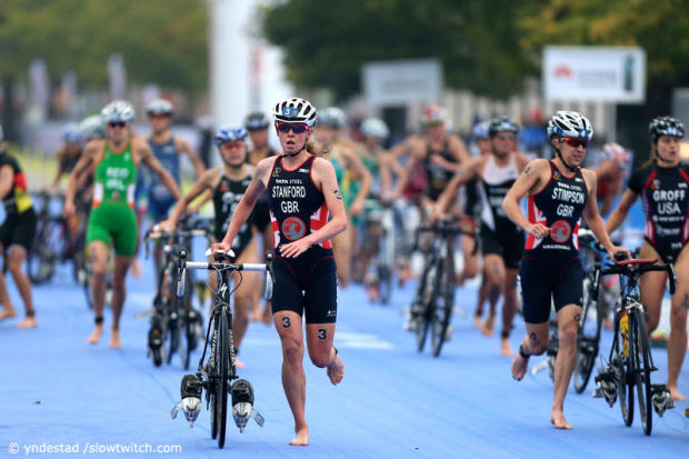 The mayhem that is the bike-run transition in ITU racing.