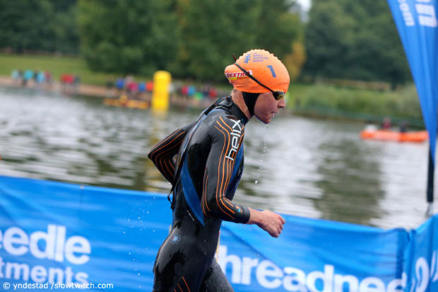 The race is on in very clear wetsuit legal conditions.