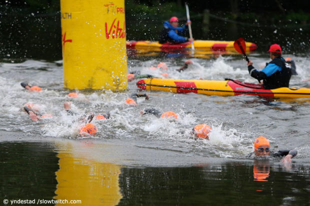 And back in the water they go for the second lap of the swim.
