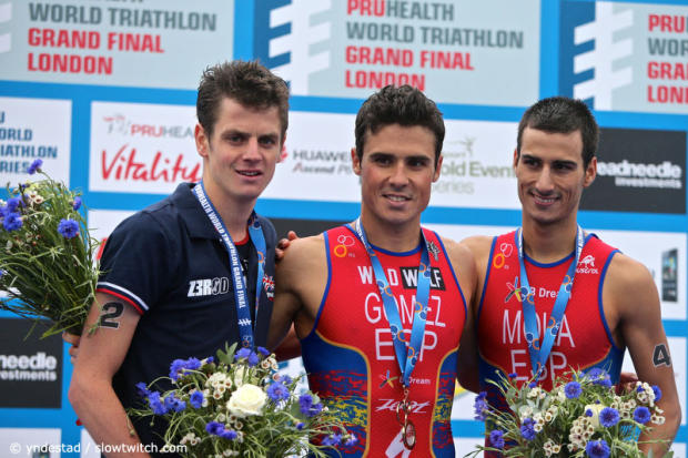 Javier Gomez snagged the win at the 2013 ITU World Triathlon Series Grand Final in an awesome sprint finish over Jonathan Brownlee and also earned the WTS series crown.
