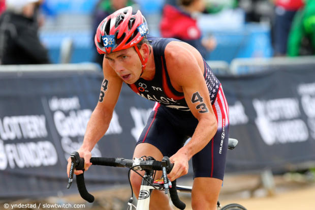 American Joe Maloy had a great swim but had a slow transition that seemingly made him miss the front bunch.