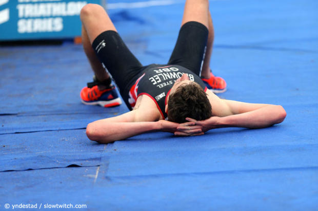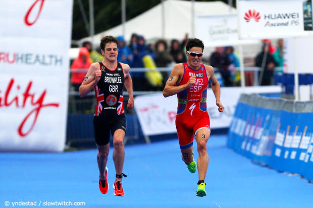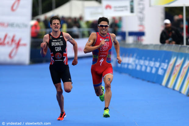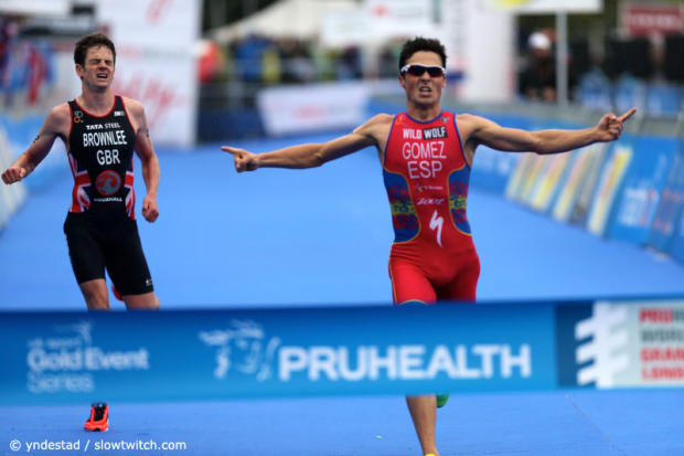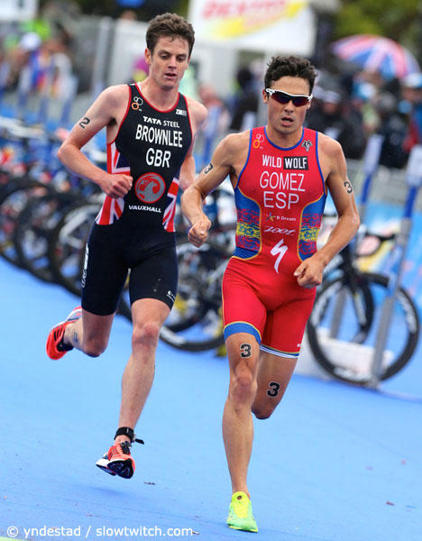 Javier Gomez had opened the sprint, but Jonathan Brownlee managed to jump past him. Here however Gomez seemed to have found one more gear.