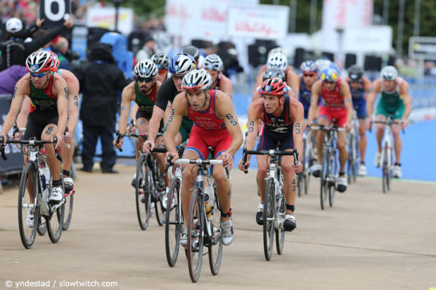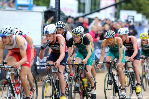 Alistair Brownlee was driving the pace in the front group that contained 13 athletes.