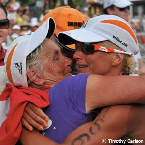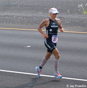 The year for my partner (Thomas J. Vonach) and I was already successful when we were on our way to Kona. We had great preparation for the World Champs in Hawaii, altitude training in Lake Tahoe was the key for another great race this season. Would it work? We would find out on October 11 and yes it worked, we both had a great race. Thomas top 100 for the 6th time (and only five months after two disc-surgeries and a numb left leg) and me…. I guess you know the story: Rookie of the year and a great 2nd place behind Chrissie Wellington, who seems to be out of the world at the moment. How did I become 2nd? I just did what Tommy (my boy friend, manager and training-partner) told me to do: I had an easy, maybe little bit to slow swim, but for that felt full of energy and rested on the bike (nevertheless I will work hard on my swim in Australia this winter). On my little tiny Cervélo P3 with 26” wheels (I ride a 48cm due to my pocket-rocket-body-size). I hunted down all the girls and ended up with the fastest bike time of the day. How did I do that? I just did what Tommy recommended and he should know because he did the race seven times. "Start slow and ride as fast as you can going back from Hawi and take care to go below the wind with your tiny bike." 😉 I have to say a big thank you to Veltec USA and Bikeworks (Kona) for making my bike that fast, it felt like they did hide a motor somewhere that was helping me along.