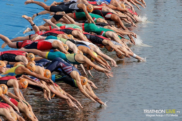 Vittoria Lopes of Brazil led a swim breakaway of four women with a 9:15 split, followed closely by Maya Kingma of Netherlands, Jessica Learmonth of Great Britain and Katie Zaferes of the U.S.