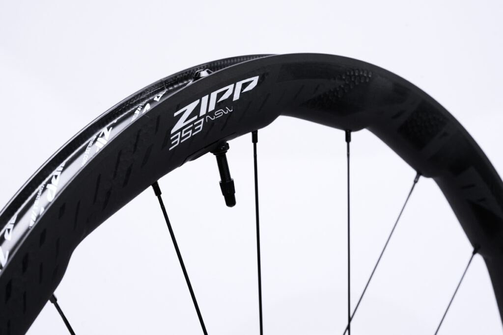 New to the 353 line up, of course, is the internal integrated AXS Wheel Sensor, along with the upgraded ZR1 SL hub that includes ceramic bearings instead of stainless steel. The undulating 35/40mm deep rim shape not only helps cut weight, but also decreases all-around rolling resistance, while improving crosswind stability and aerodynamics. The weight cuts also come from the hub as the ZR1 SL is 30 grams lighter than the Cognition V2 hub this version is replacing. And, I’m not joking when I say that according to ZIPP the 353 NSW is not approved for gravel riding.