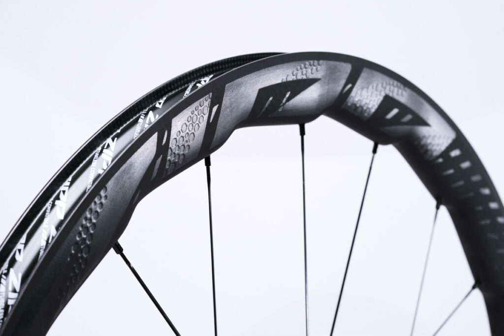 Zipp’s updated carbon layup adds about 10% more impact strength, while also adding an extra 5 grams on the opposite side of the internal AXS wheel sensor for load balancing.