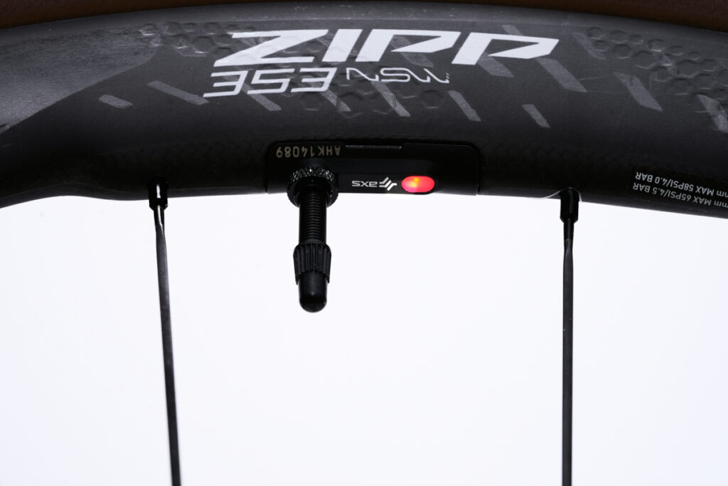 Think of this as the new 303 Firecrest. ZIPP has dubbed this as the new standalone, bullet-proof, work horse. It’s the only wheel in this new release that ZIPP approves to ride anywhere. It now comes with an integrated AXS Wheel Sensor. Before you roll, you do a quick check and, if the light’s green, you’re good to go. If it’s red, get the old pump out, ’cause you’re going to need it.