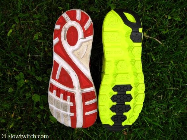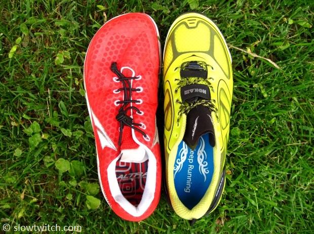 Pictured above: Altra Paradigm (left) vs Hoka Conquest (right).