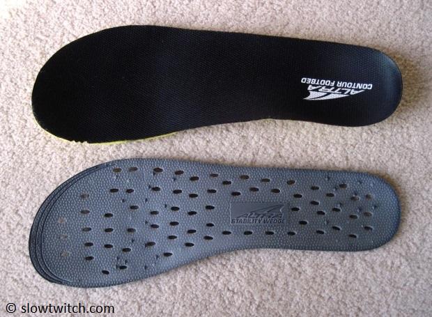 The gray stability wedge (bottom, in above photo) goes beneath the standard sockliner. You can use both, one, or nothing at all.