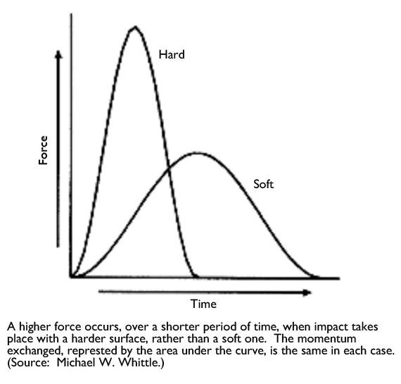 Researchers have done more than to quantify the different hardness of running surfaces. Dixon et al tested runners on several surfaces and determined that the surface itself did not change the peak impact forces. That is, the amount of force runners "measured" did not vary based on the surface they ran on. What changed was the way they ran. Initial joint angles, peak joint angles, and peak joint angular velocities were all observed to change depending on the surface. Another study (Ferris et al) found that changing the surface caused a change in leg stiffness. By adjusting leg stiffness to accommodate surface stiffness, the runners maintained similar locomotion mechanics on different running surfaces.