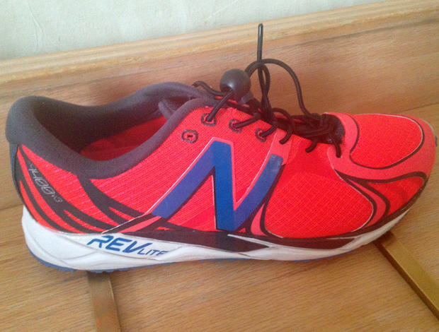 Tyler Mislawchuk is obviously wearing New Balance RevLites, but his laces are from another footwear company, Karrimore. They seem to be standard elastic laces with closures.
