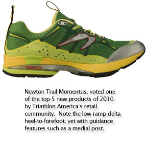 Newton's shoes are known for an exceptionally low ramp delta as well as generally low shoe heights. Still, Dave Jewell notes that, "Now there are shoes with a low delta and thicker overall midsoles that are getting some traction."