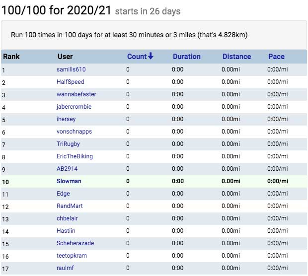 Our annual winter run challenge is starting a little earlier this year, by popular demand. The Slowtwitch 100/100 Run will begin 4 weeks from yesterday, on a Sunday, November 15th. It’ll also end on a Sunday, if we’ve counted out 100 days accurately.