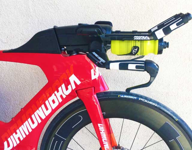 The Andean has so much storage you could go touring on it. When I ride this bike I feel like Jethro Clampett driving cousin Pearl’s 1922 Buick out to California: ”They loaded up the truck and moved to Beverly; Hills, that is." But what about front hydration? (If that’s how you roll, which I do). The bike is made to work with a Profile Design Aero HC bottle in line and it lines up like a little soldier right in front of the rest of the front storage. But I didn’t have one of those Aero HC bottles at the ready, so I cannibalized a couple of old Profile Design J2 brackets and put a front cage on there. If you’re going to angle it down underneath the bars, like I did, you need a pretty grabby cage, like an XLAB Gorilla or similar.